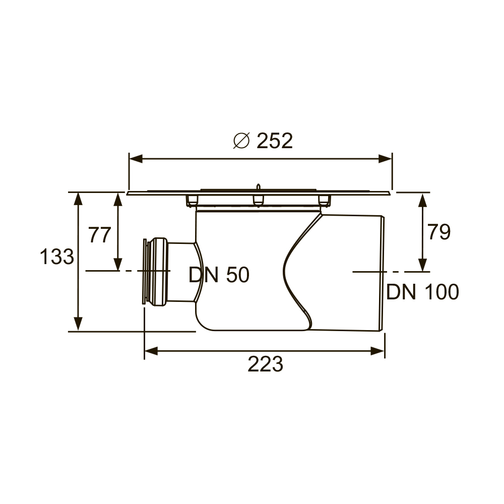 - Уровень гидрозатвора = 50 мм согласно DIN EN 1253