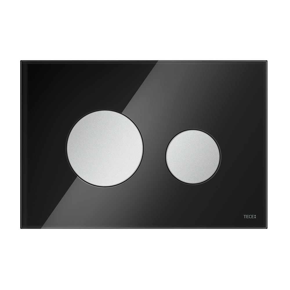Панель смыва для смывных бачков TECE, фронтальная или верхняя установка. Плоская стеклянная панель смыва с двумя установленными на пружинах клавишами смыва. Подходит для монтажа на уровне стены вместе с монтажной рамкой унитаза (например арт. 9240649). Совместима с контейнером для гигиенических таблеток.
