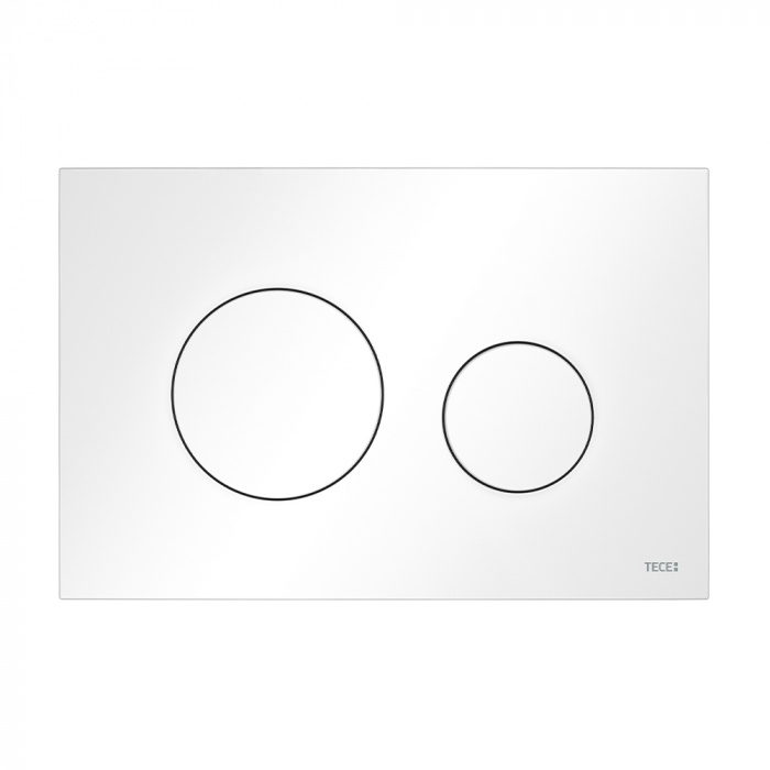 Панель смыва для смывных бачков TECE, фронтальная или верхняя установка. Сверхплоская панель смыва с двумя установленными на пружинах клавишами. Совместима с контейнером для гигиенических таблеток.