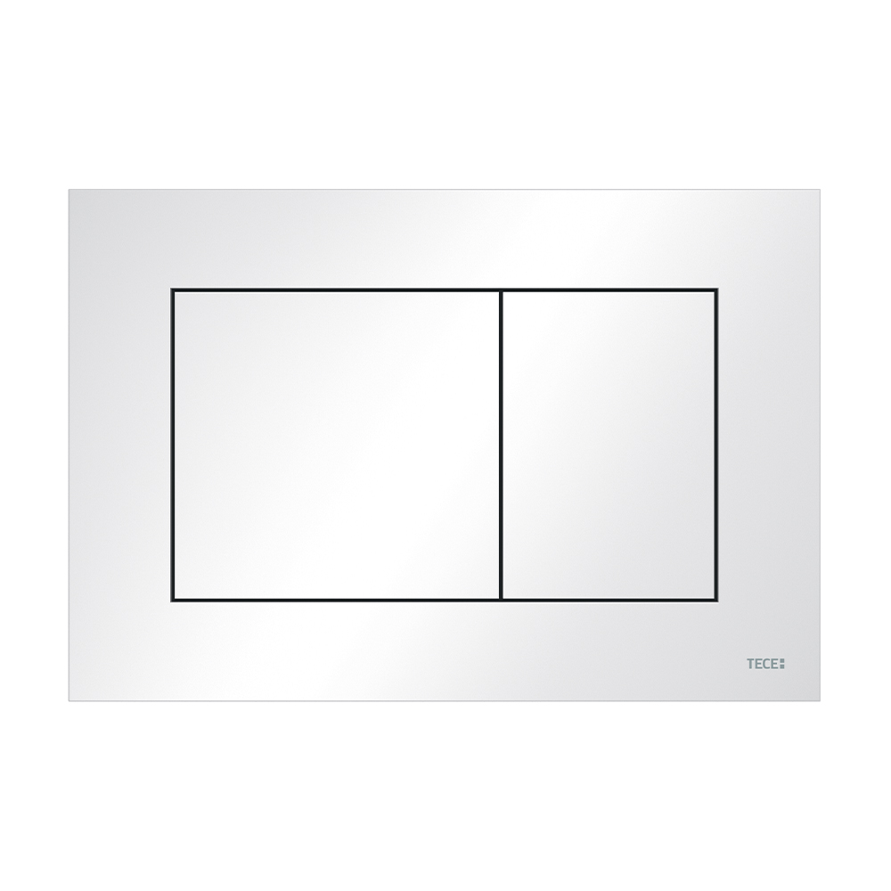 Панель смыва для смывных бачков TECE, фронтальная или верхняя установка. Плоская пластиковая панель смыва, клавиши с резиновыми накладками с обеих сторон. В комплект входят толкатели и крепежные элементы. Подходит для установки на уровне стены вместе с монтажной рамкой унитаза и дистанционной рамкой TECEnow. Совместима с контейнером для гигиенических таблеток.