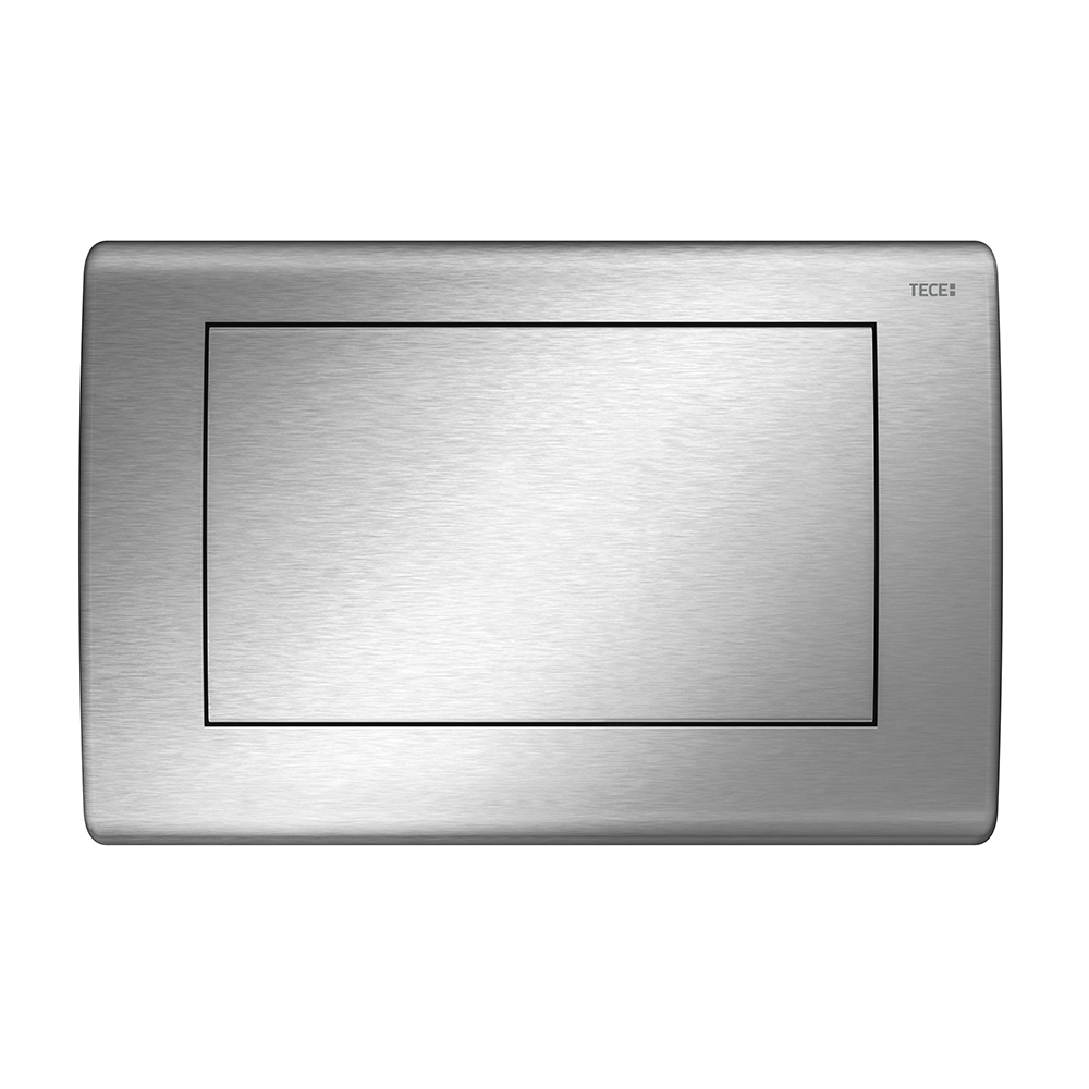 Панель смыва из нержавеющей стали для смывных бачков TECE, фронтальная или верхняя установка, фиксация с помощью потайных винтов. Упорное кольцо с резиновыми накладками с обеих сторон. В комплект входит толкатель и комплект крепежных элементов. Совместима с контейнером для гигиенических таблеток.