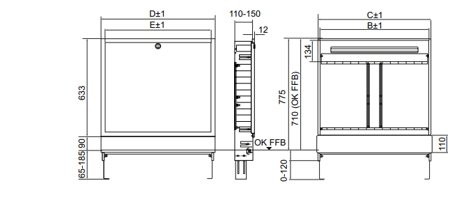 Боковые и верхняя стенки имеют перфорации для прокладки труб. Съемная перегородка для бетонной стяжки. Порошковое покрытие белого цвета (RAL 9016). Регулировка по глубине 110–150 мм, монтажная высота 780–900 мм.