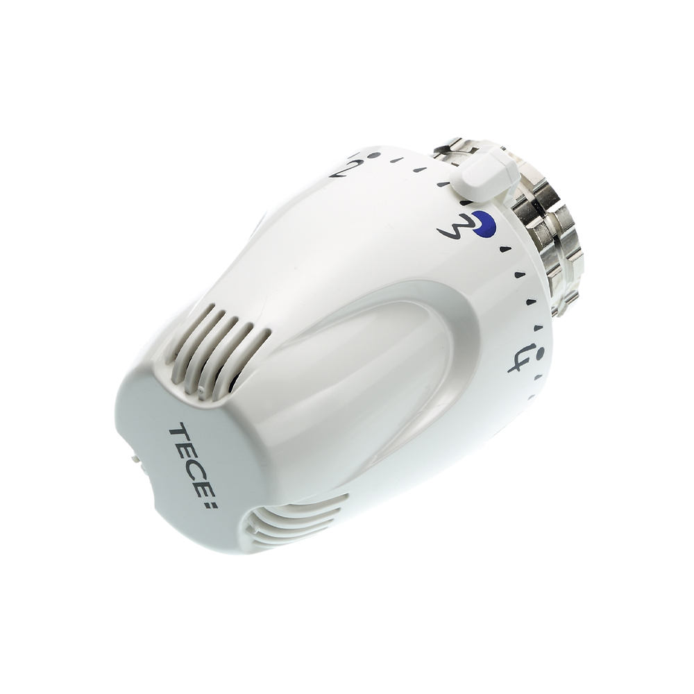 Термостат для вентилей с резьбой M30 × 1,5 белый, диапазон настроек 1–5 (соответствует температуре 7–28 °C).