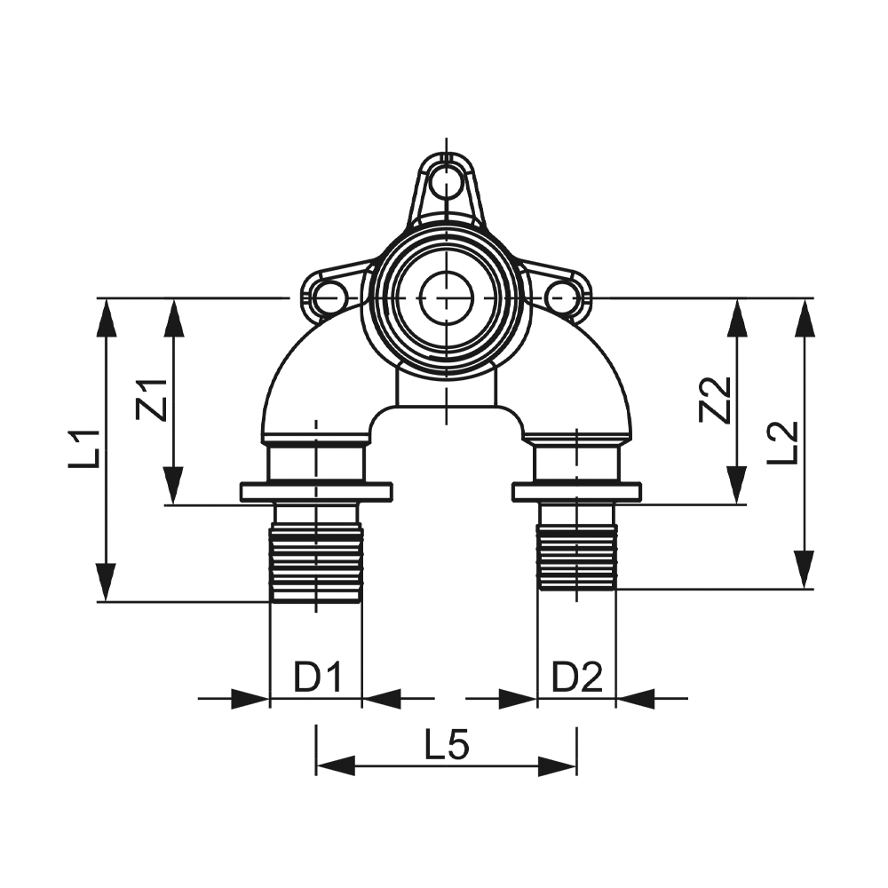 Тройник угловой с настенным креплением из бронзы/кремнистой бронзы, закругленный, для