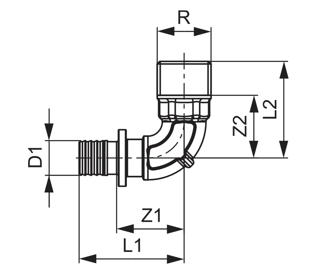 Уголок соединительный с ниппелем TECEflex, стандартная латунь