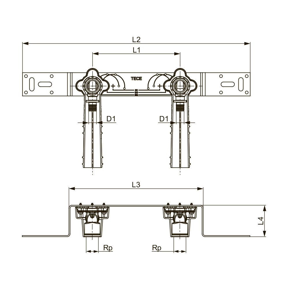 Монтажный комплект TECEflex с настенными уголками из стандартной латуни. Для подключения смесителя.
