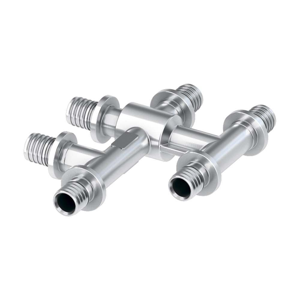 Изготовлен из никелированной латуни. Для упрощения соединения труб подключения радиатора в конструкции пола.