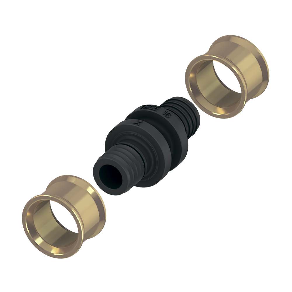 Соединение труба-труба, PPSU, аксиальная запрессовка, предназначено для соединения труб поверхностного отопления SLQ PE-RT/Al/PE-RT, для соединения без применения уплотнительного кольца, обеспечивает низкое падение давления благодаря технологии расширения.