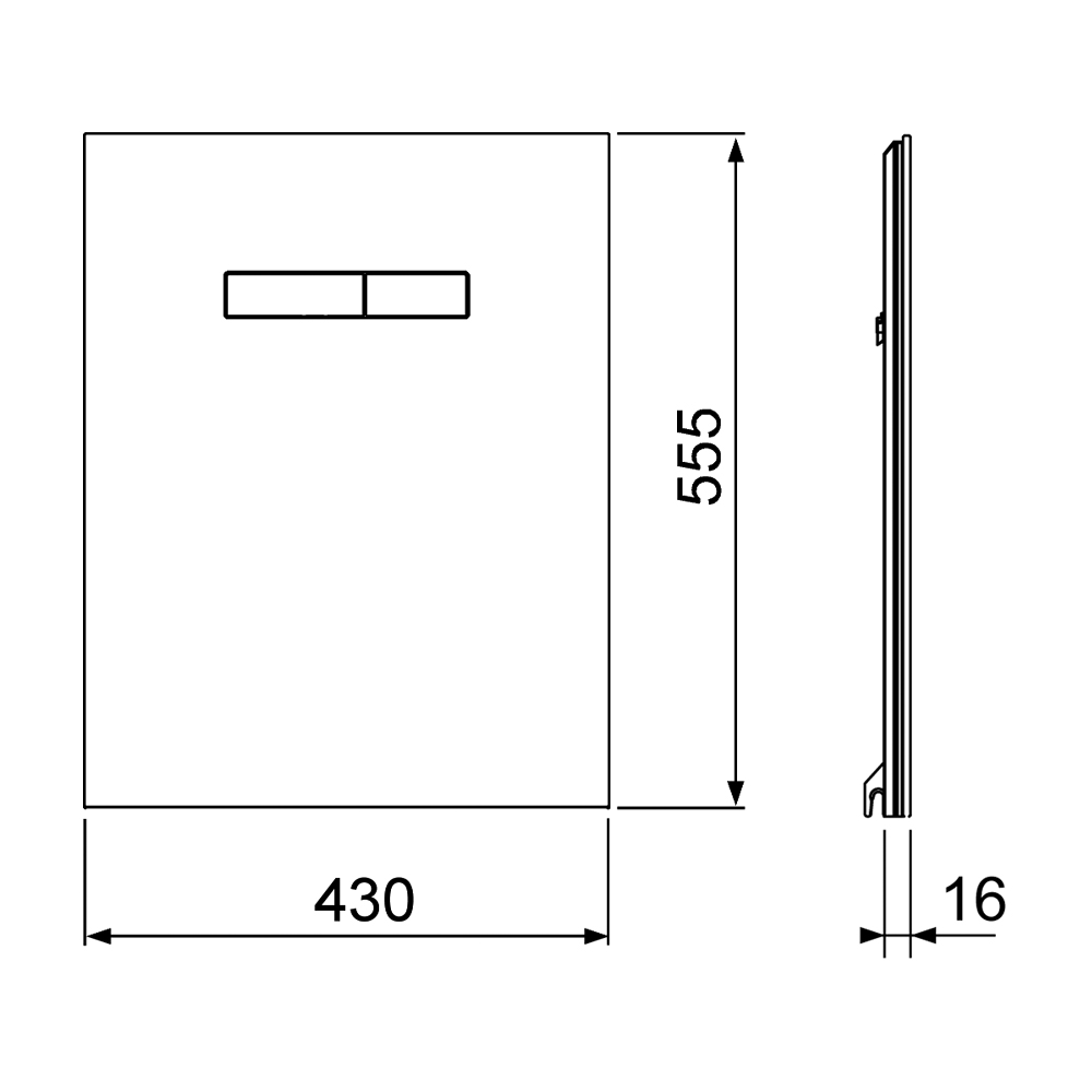 Верхняя стеклянная панель для застенного модуля TECElux с механическим блоком управления с двумя подпружиненными клавишами смыва. Включает толкатели и крепежные элементы.