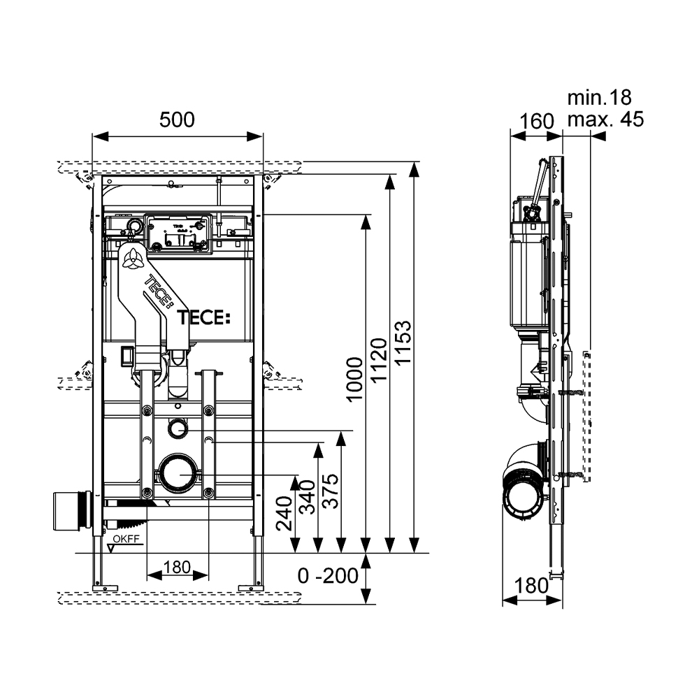 - Установочное расстояние для унитаза 180 мм