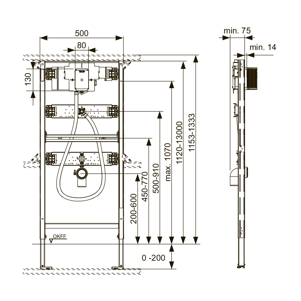 Не подходит для наполовину скрытых писсуаров, например, Keramag Joly и Visit.