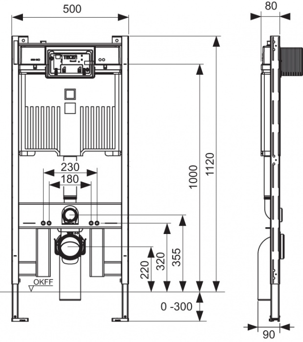 С данным модулем невозможна установка электронных панелей смыва TECE и контейнера для гигиенических таблеток. Минимальная монтажная глубина 80мм возможна исключительно при подводе канализации из пола!